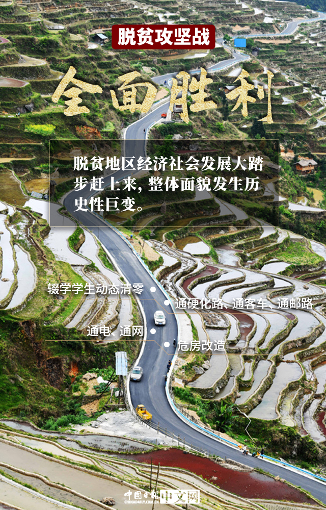 “我国脱贫攻坚战取得了全面胜利!”, 这是中华民族伟大复兴历史进程中具有划时代意义的重要里程碑,是人类减贫历史上前所未有的伟大成就,是党团结带领全国各族人民创造的又一彪炳史册的人间奇迹。