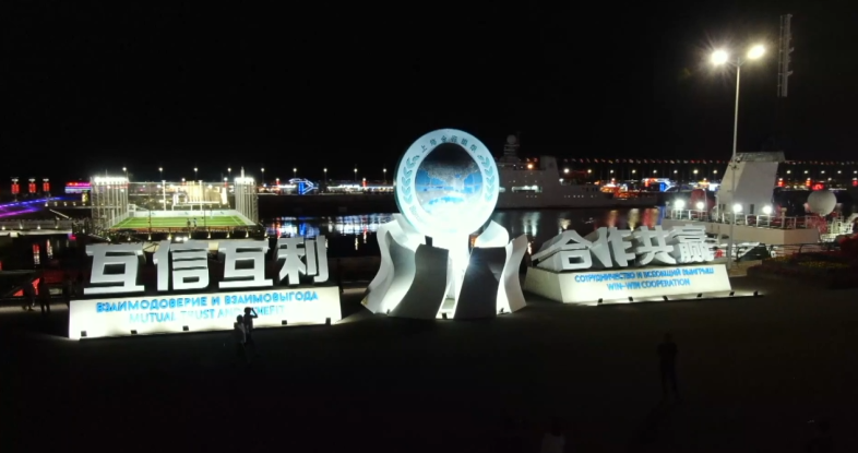 跨过胶州湾继续往西走,来到了青岛西海岸新区的唐岛湾,庆祝建党百年的主题灯光秀同样也在上演。海边33座楼宇的外墙就像一块巨大的幕布,光影变幻与大海融为一体。一幅幅背景墙,就像一面面风帆,在灯光的映射下,变幻着色彩和图案,“热烈庆祝中国共产党成立100周年”、“当好主人翁,建功新时代”,道出了人民的心声。作为国务院批准设立的第9个国家级新区,近年来,青岛西海岸新区正不断开创高质量发展的新格局,全力打造开放、现代、活力、时尚的国际化新区。