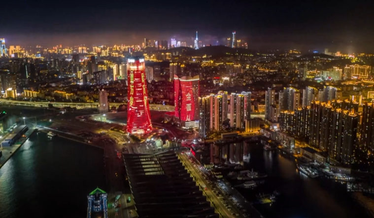 点击图片观看视频 五月的风点亮青岛辉煌路 隔海相望的五四广场上,青岛标志性雕塑“五月的风”已经被灯光点亮。星星之火,燎原海岸。中国共产党成立百年以来,熊熊火炬唤起了时代的觉醒,也照亮了青岛的辉煌之路。此时此刻,浮山湾248栋建筑物已经被点亮,庆祝中国共产党成立100周年主题灯光秀正在上演。 光影璀璨浮山湾 共庆建党百周年 几天之前刚刚启用的青岛新的地标性建筑——369米高的青岛海天中心,它的灯光布置面积达到了17万平方米。可以说,它的加入,完成了整个浮山湾畔灯光秀的最后一块拼图。