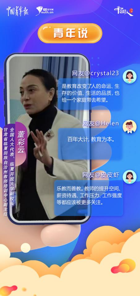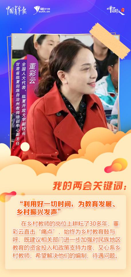 该州所辖八县市曾是六盘山集中连片特困片区扶贫开发重点县,教育基础条件薄弱、教育教学质量不高、高层次师资力量匮乏。在乡村教师的岗位上耕耘了30多年,董彩云直击“痛点”,始终为乡村教育鼓与呼,既建议相关部门进一步加强对民族地区教育的资金投入和政策支持力度,又心系乡村教师,希望解决他们的编制、待遇问题。