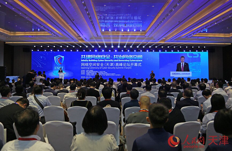 8月28日,首届网络空间安全(天津)高峰论坛开幕。人民网记者 崔新耀摄