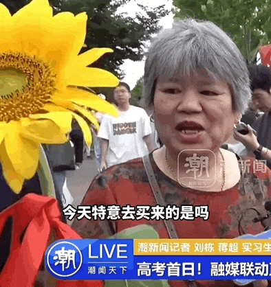 无独有偶 在浙江杭州一考场外 70岁外婆 拿着外公特意为外孙种的向日葵送考 祝他一举夺魁