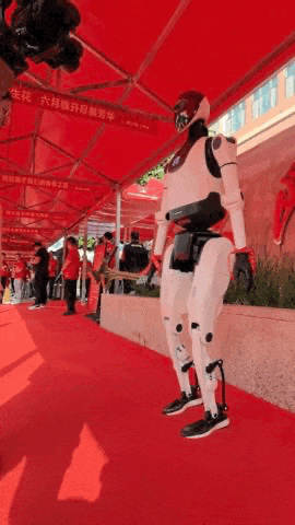 北京考点外 人形机器人“天工2.0” 为进场的考生 送上鲜花和祝福 预祝考生一举夺魁