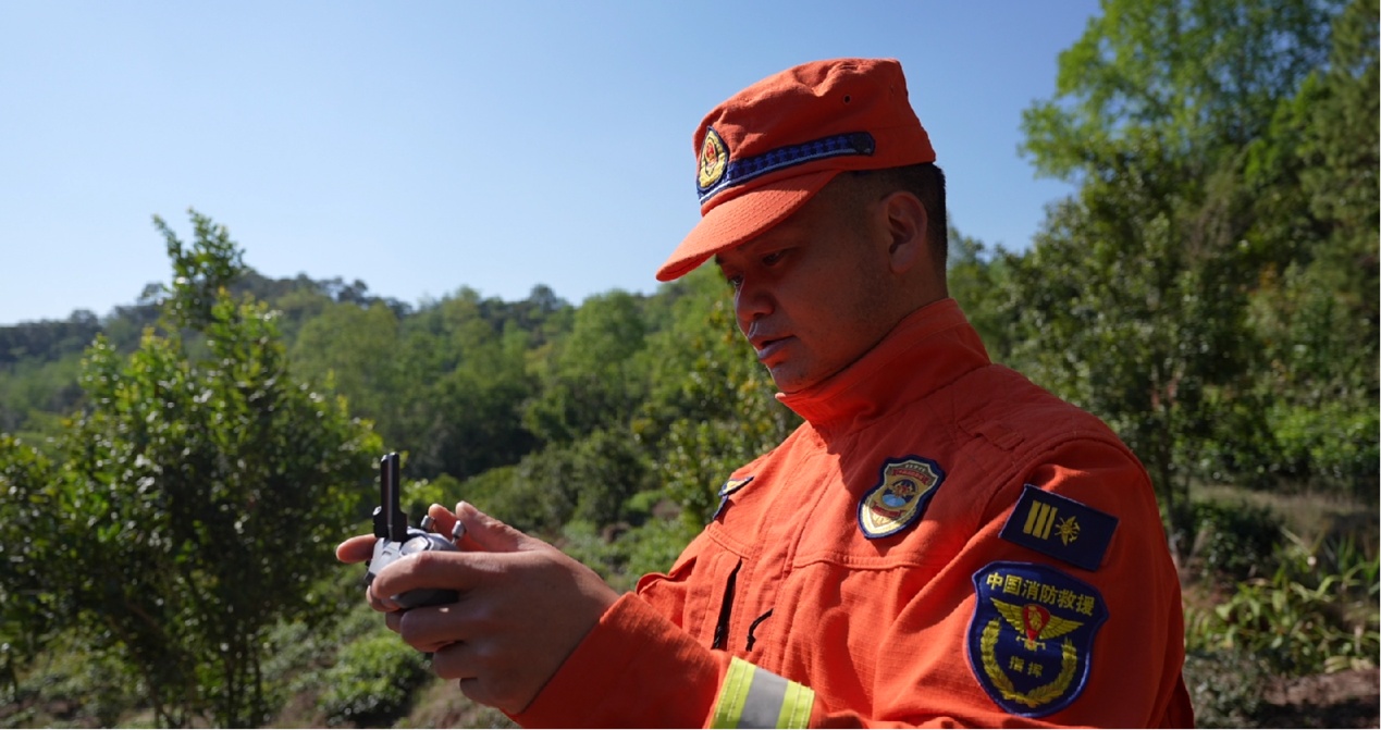 普洱消防救援机动支队消防员郭元丰升起无人机