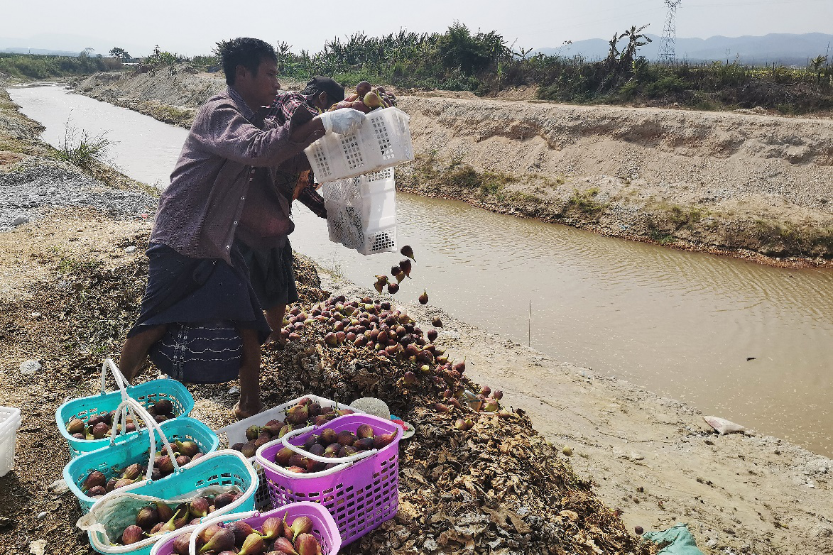 ▲无花果卖不出去,在地头烂掉,农户此前不得不把因为滞销产生的坏果倒入河里 拼多多供图