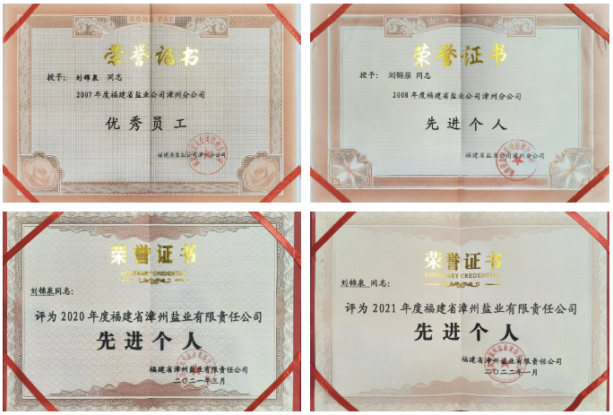 刘锦泉在工作岗位获得的荣誉证书