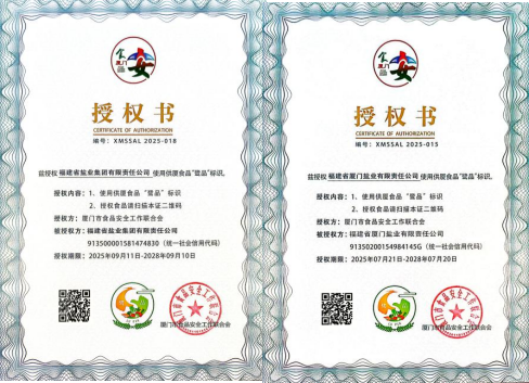 福盐集团及权属企业厦门盐业获鹭品授权书