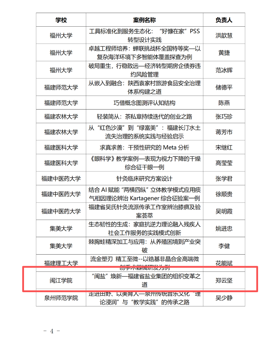 近日,福建省学位委员会办公室公布第四批研究生教育项目名单,福盐集团组织变革管理实践成果《“闽盐”焕新——福建省盐业集团的组织变革之道》成功入选福建省专业学位研究生优秀教学案例。