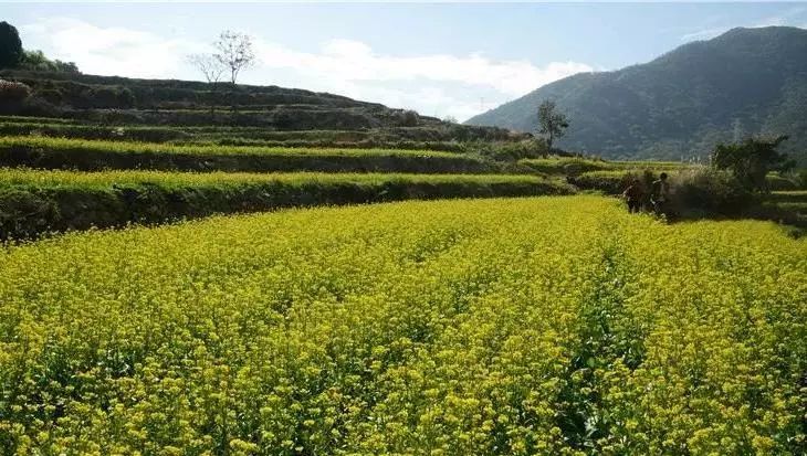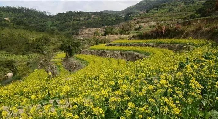 锄山村的油菜花种植在山腰上的梯田里,油菜花层层叠叠,别有一番美感。