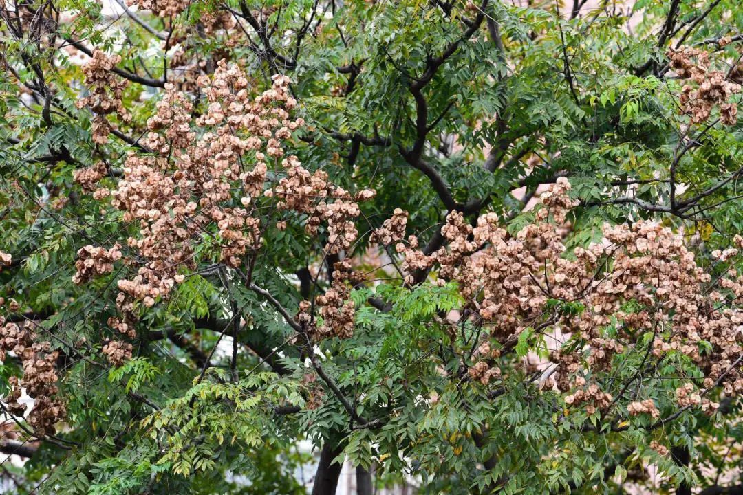谢雨真 摄 褐 台湾栾树 赏花点:和宁路 和宁路两侧种植的都是台湾栾树,进入冬季后,这条路的色彩起了明显的变化。10月初,这里台湾栾树的色彩主要还是以黄色和红色为主,而现在已经转为褐色。