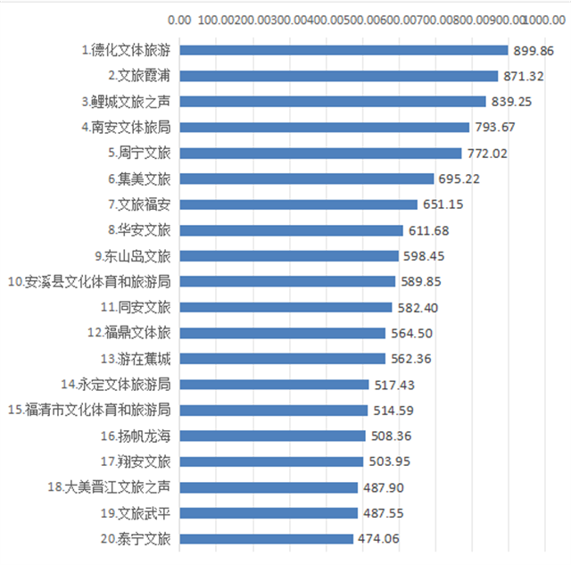 福建省各县(市、区)文化和旅游政务微信公众号10月传播力指数TOP20