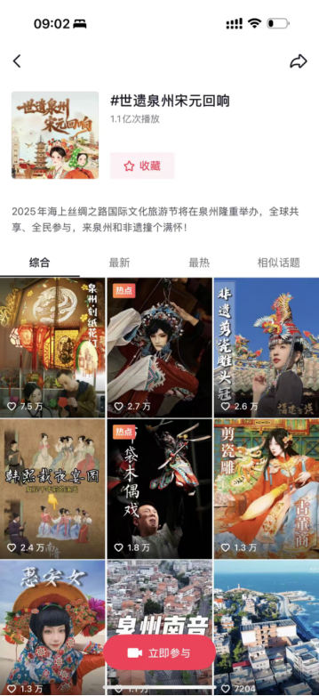 从12月话题在抖音平台上线,来自全国各地的达人们通过年轻化的表达,让网友们能沉浸式、互动式体验泉州非遗文化。让泉州的历史文脉得到更好地保护传承,文化影响力不断提升;让世界看到了泉州新形象,看到了泉州全力打造世界遗产保护利用典范城市的决心和定力。 |